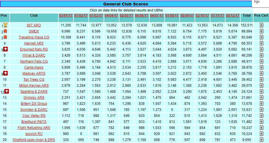 Thanks to efforts from G4HGV, G4LDL, M0IEP, M1CJE, M6XTB the Swindon club achieved a position of 15th in the General Section.